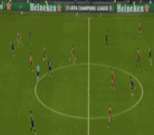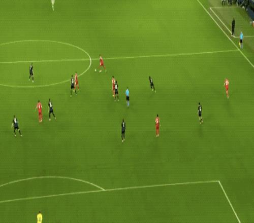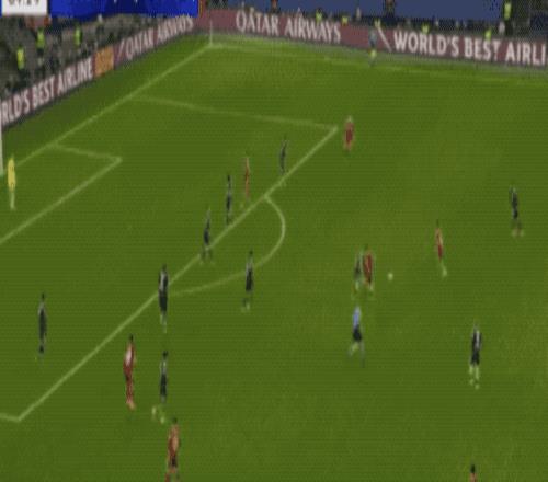 开场只有5分钟,17岁的小将卡尔钟摆式过人甩开防守,面对包夹上演精彩世界波,打进欧冠处子球。