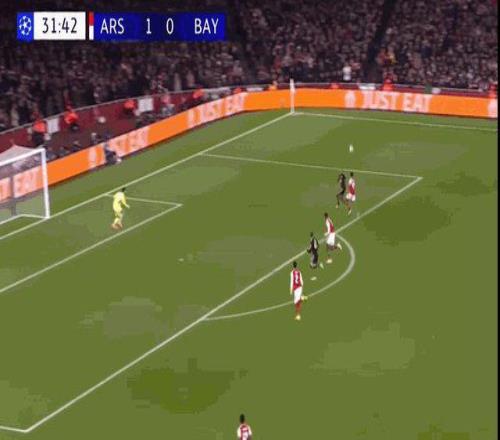 第48分钟,基米希解围失误,萨卡得球后进入禁区抽射打高。