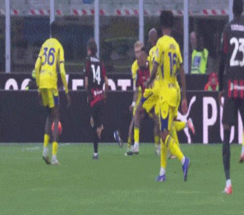 第18分钟,奇克中场带球突进,被维罗纳前后包夹铲倒裁判没有表示。
