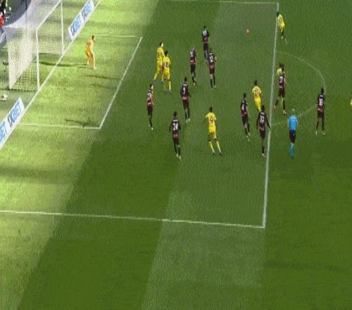 第26分钟,拉比奥弧线球传中,恩昆库中路抢点差之毫厘。