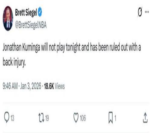 值得一的是,在勇士官方临时宣布这一消息前不久,主帅科尔才在公开的采访中表示受到球队多人因伤缺席的影响,本场比赛库明加一定会出战。